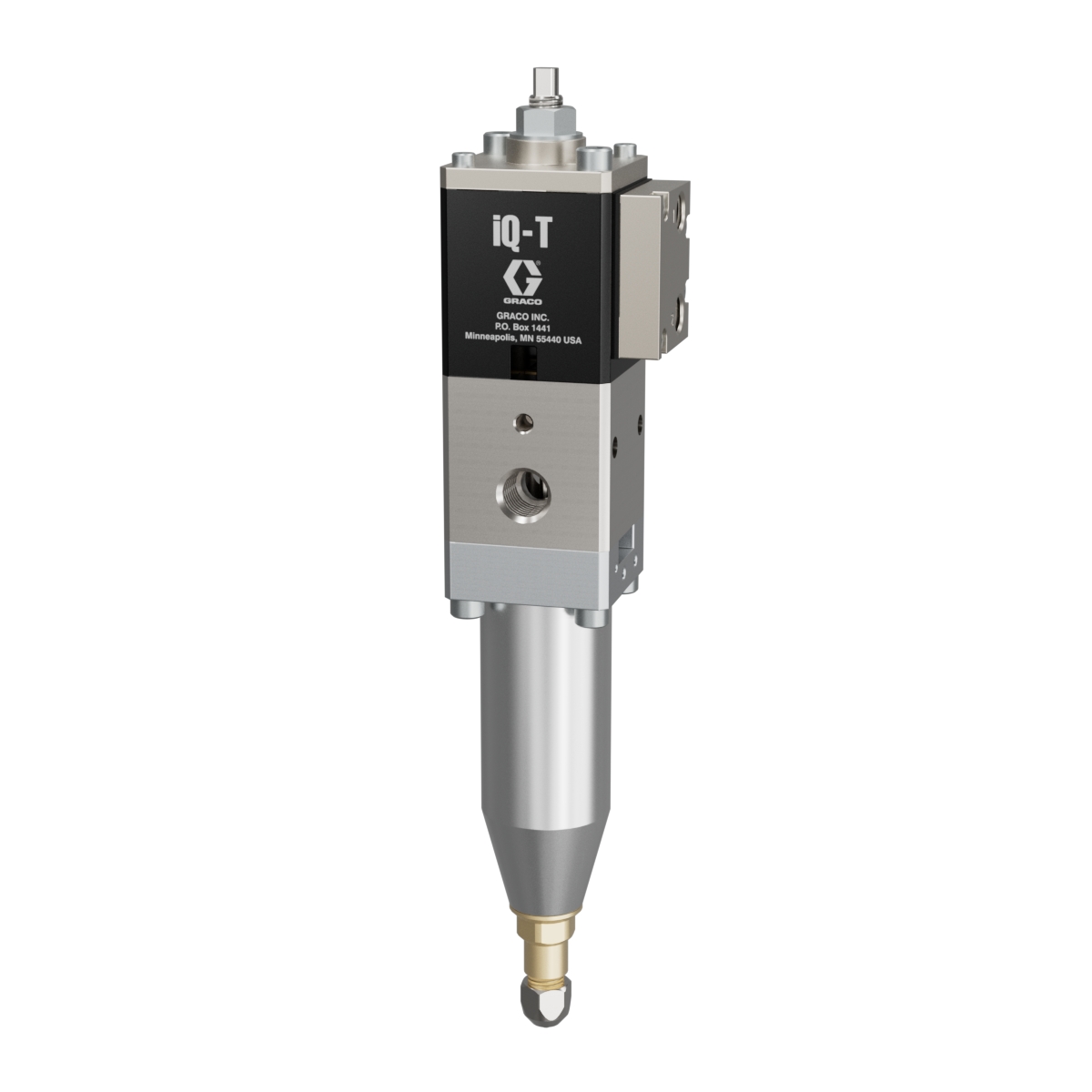 Dávkovací ventil iQ, těsnění trysky, teplota prostředí, koncová tryska 1,7 mm, tryska 60 mm, solenoid se vzdálenou montáží