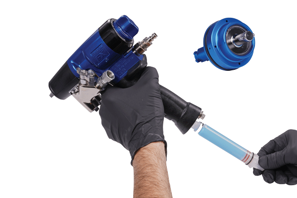 Easily access the mix chamber in seconds without having to disassemble the gun for quick changes of mix chamber sizes, or to clean impingement ports